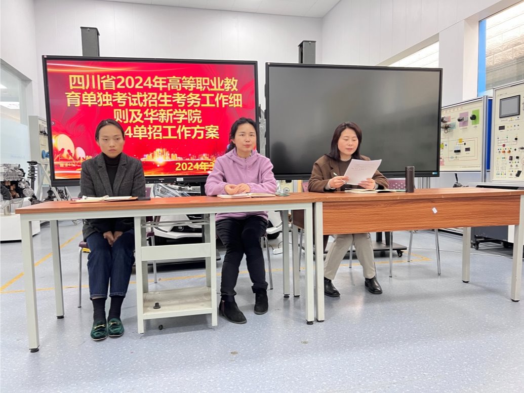 会议第二项,由副书记尹镜如领学《四川华新现代职业学院2024年高等职业教育单独考试招生工作方案》,将考场情况、考试科目及重点工作进度安排进行了详细解读。