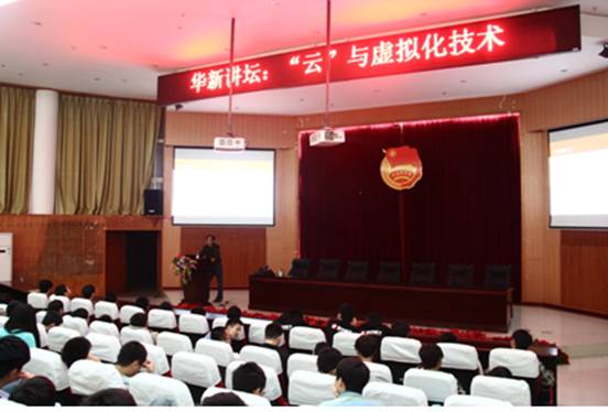 张教授就当下最热门的IT技术——“云”,给同学们介绍了与之相关的各种云应用,以及核心的虚拟化技术,语言生动幽默,演讲充满激情,讲座中还与同学们就“云”未来的发展趋势进行互动交流。