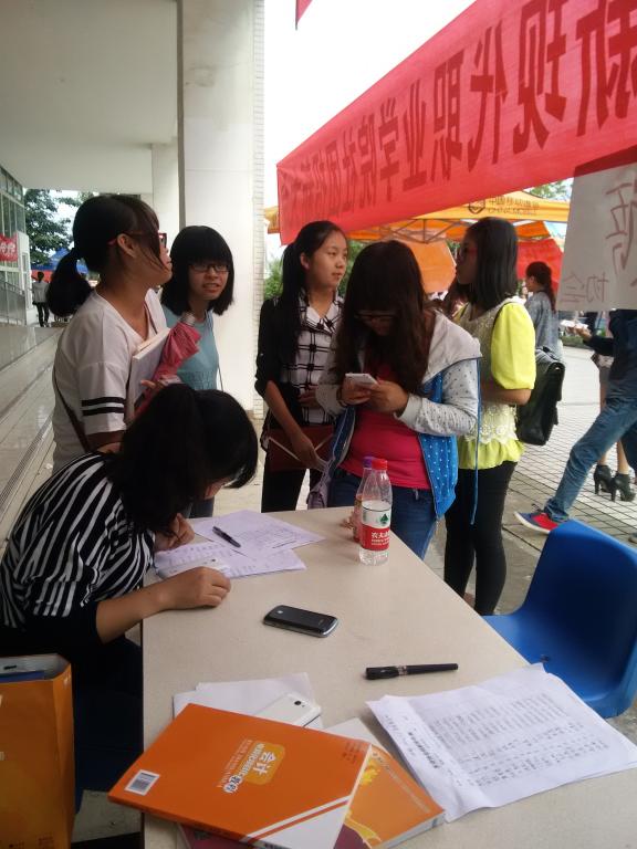 2014年9月18日中午,在社团联合会的带领下我们英语协会在学生食堂门口展开了这次招新工作,虽然天下着蒙蒙细雨,但是环境的限制并不能阻挡我们为英语协会招贤纳士的热情和信心。