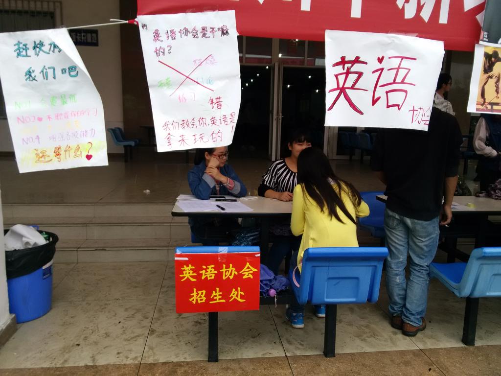 在丹桂飘香的新学期里,我院又迎来了一年一度的社团纳新活动。在本次招新活动中,英语协会严格遵守学院院团委和社团联合的各项规章和要求,始终坚持公平、公正、公开的原则,顺利的完成招新工作。