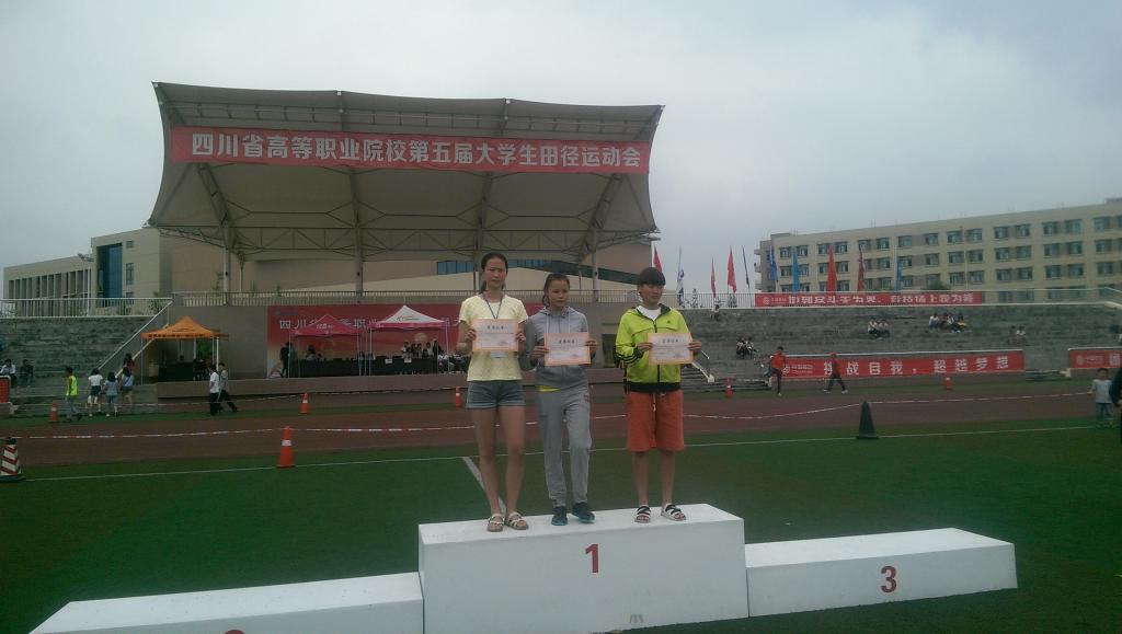 四川省高职院校第五届田径运动会于2015年5月15—17日在四川管理职业学院安德校区举行。我院选派的六名运动员顽强拼搏,获得女子团体第七名和体育道题风尚奖。其中,江兰同学获得女子跳高第二名,并打破了省运会纪录。