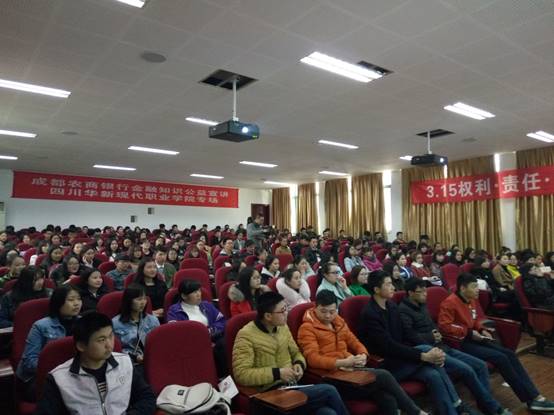 为加强学生金融知识宣传教育,在“3.15金融消费者权益保护活动”之际,我院邀请了成都农商银行在我院机投校区开展了金融知识宣讲活动。