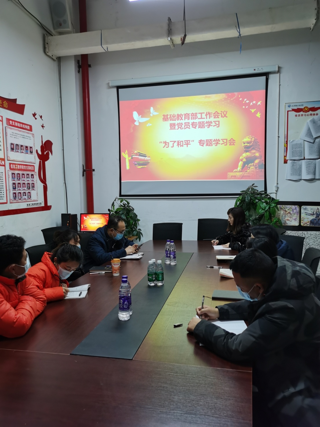 年12月11日中午,基础教育部全体教师在明德楼111会议室召开部门工作会议暨“为了和平”专题学习会。基础教育部张华主任主持会议。