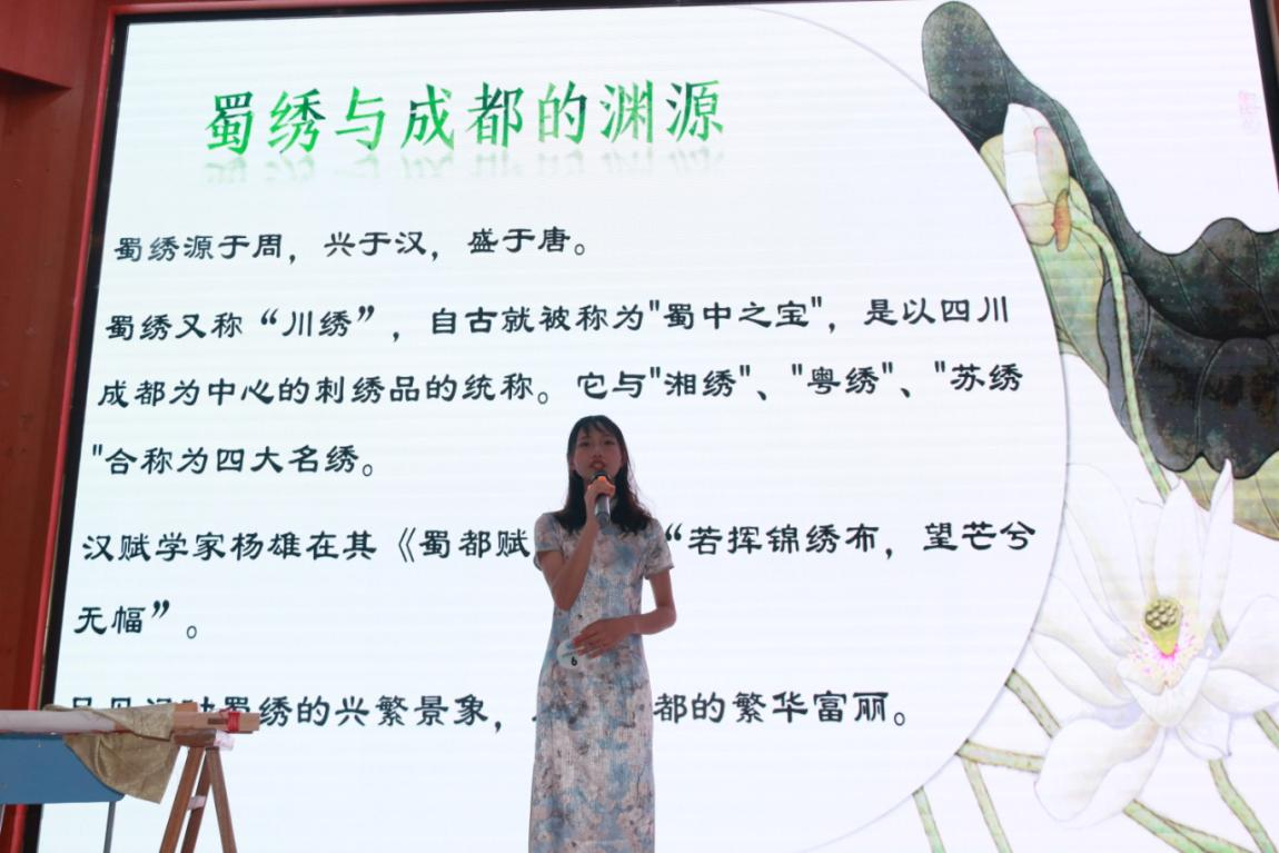 6号选手身着古典旗袍,带我们走进美轮美奂的蜀绣世界。作为"蜀中之宝",汉赋学家杨雄在其《蜀都赋》中云“若挥锦绣布,望芒兮无幅”,足见汉唐时蜀绣的富丽华贵。