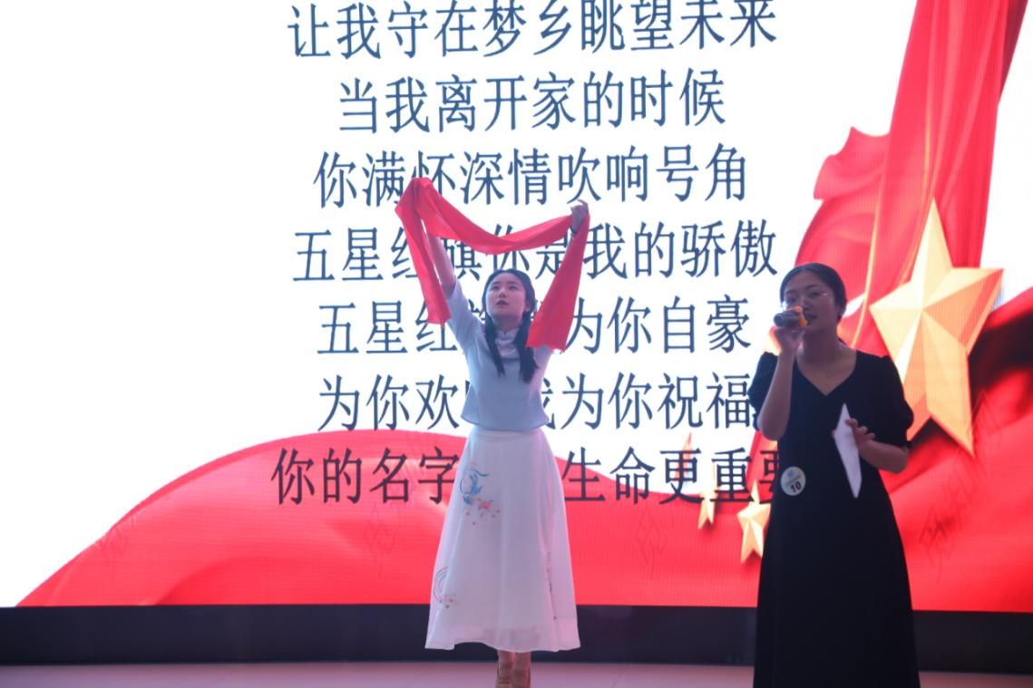 聆听1号选手温婉深情的朗诵,我们在横撇竖捺的方块字里,在历史的浩瀚典籍中,沿着甲骨文沧桑的纹理,感悟生生不息的华夏文明,品读众志成城、辉煌灿烂的伟大祖国。