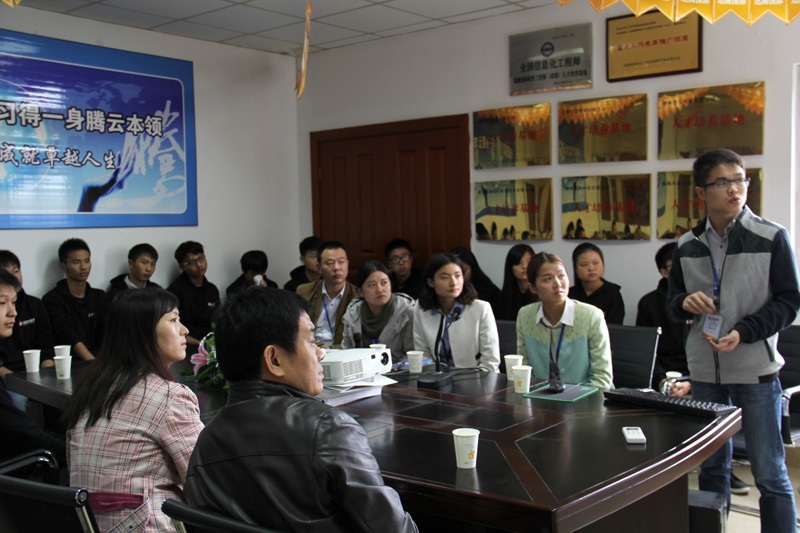 我系师生的到来,受到了培养基地领导的热烈欢迎。大家首先来到会议室,认真听取了相关教师对培养基地人才培养工作的介绍。双方就人才培养过程中的实训教学问题、学习方法问题、学生管理问题、教学管理问题等进行了深入交流。由于所遇问题相似性很高,我系橙子班的同学和培养基地的同学很快熟络起来,随后还交流了很多生活中的问题。