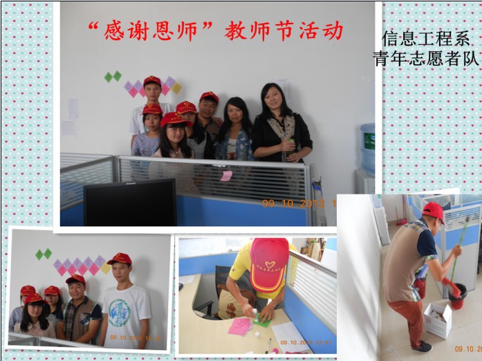 尊师重教历来是中华名族的优良传统。教师节的宗旨就是提高人们对教师为教育事业所作贡献的认识和评价。在教师节来临之际,信息工程系青年志愿者队组织志愿者开展以“感谢恩师”为主题的志愿活动。
