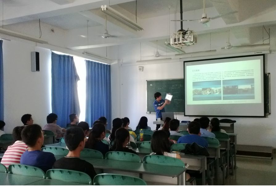 作为火车头文化传播公司的技术总监(CTO),梁勇经理首先就行业发展情况、公司发展情况、业务运营范围等为同学们做了详细介绍。随后又通过展示公司制作的三维作品使同学们认识了虚拟现实技术在建筑制造业、航空制造业、道路交通管理等领域的应用和发展。
