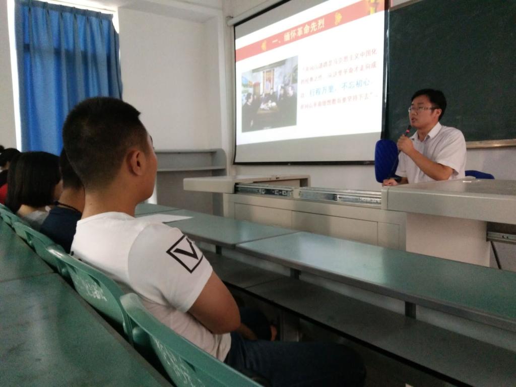 5月31日晚18:30,信息工程系“两学一做”系列之——专题学习教育活动在教学楼301举行,由系党支部组织委员周青政老师做题为“缅怀革命先烈 坚定理想信念 争做合格党员”的专题讲座,信工系全体入党积极分子参加了此次学习活动。