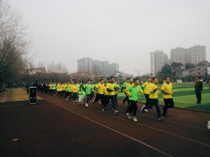 升旗仪式结束后,全体师生围绕着足球场进行了“新年第一跑”,跑向新自己。