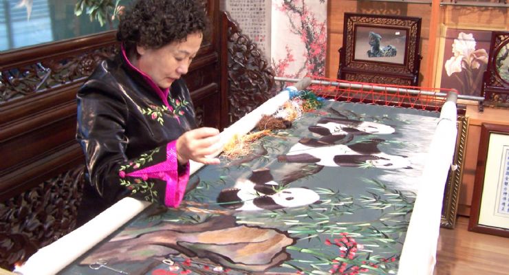 2012年2月 在北京参加“中国非物质文化遗产生产性保护成果展”演示蜀绣技艺。