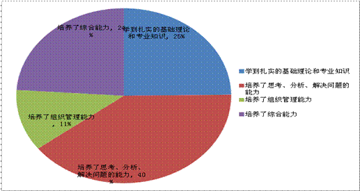从问卷调查的结果看,用人单位和实习单位对我院毕业生的整体印象较好,对其思想道德品质、工作适应能力和团队合作意识给予了充分肯定,特别是对我院学生的实践能力给予较高的评价。然而在评价中,认为其外语及计算机水平、自学能力有待进一步提高。