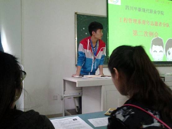 为进一步完善工程管理系青年志愿者分队工作体系,提高团队整体建设,本着“完善自我,辐射他人”的服务理念,加强“团结、奉献、友爱、互助、进步”的志愿服务宗旨,工程管理系青年志愿者分队于20141024日在教学楼104召开了第二次工作例会及队长助理竞聘大会。