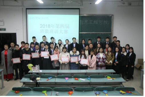 2018年11月26日星期一,在这秋末初冬的季节,信工学院师生齐聚教学楼103教室,参加信息工程学院第四届班徽班训大赛。信息工程学院的全体学生教师、辅导员、部分教师代表以及18级各班代表除此了本次大赛。