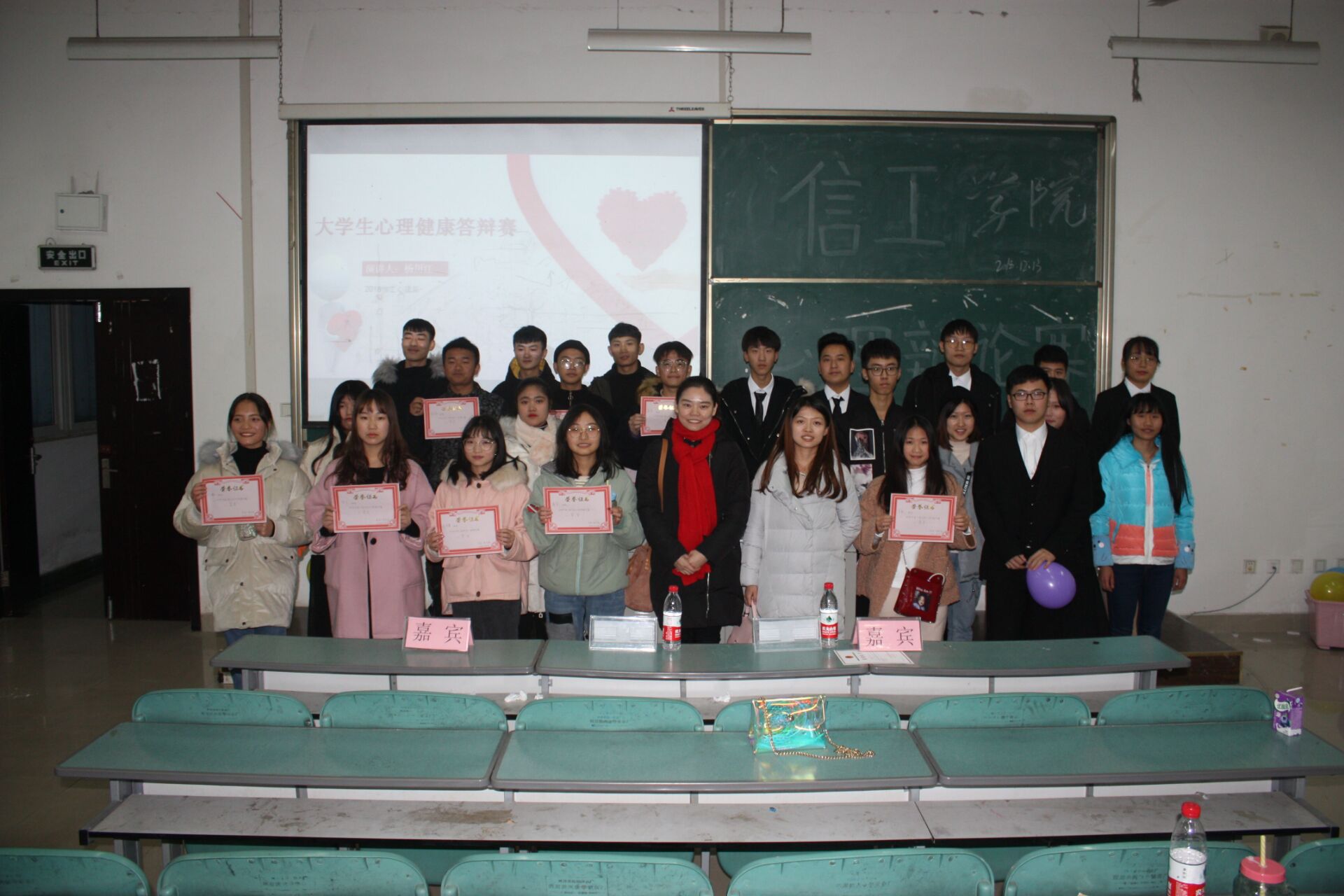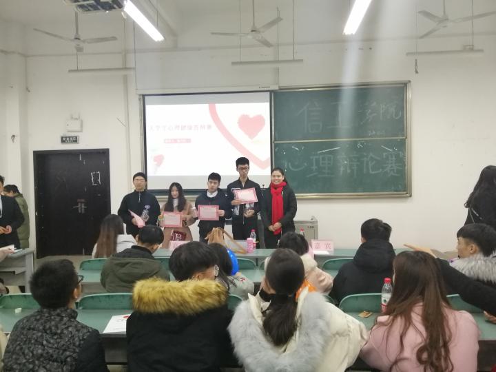 为了普及心理知识,提升同学们的心理素质,和谐校园。信息工程学院学生会心理部于12月13日晚上六点,在教学楼107教室举行了“我爱我心”为主题的辩论赛。我院辅导员:林沙老师、向美苏老师、霍冰影老师和蔡静老师作为评委出席,学生会干部以及各班心理委员一起观看了比赛。