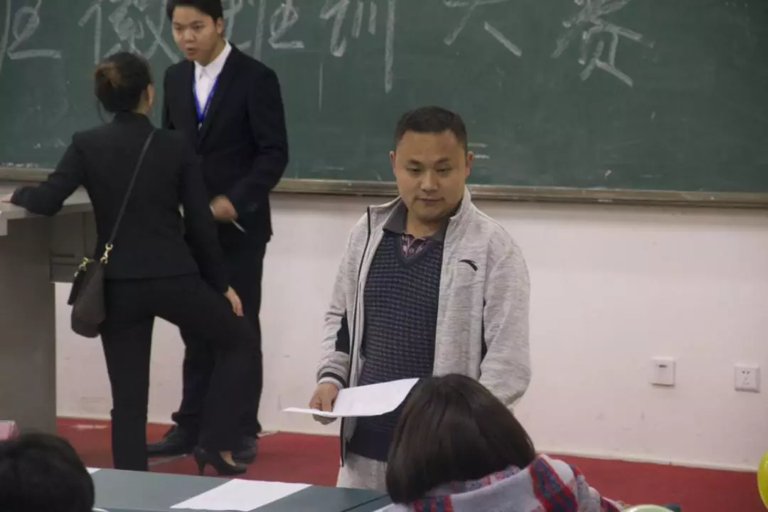 各位评委老师认真的看着每一位上台选手进行精彩的演讲激烈的竞争,名次的角逐