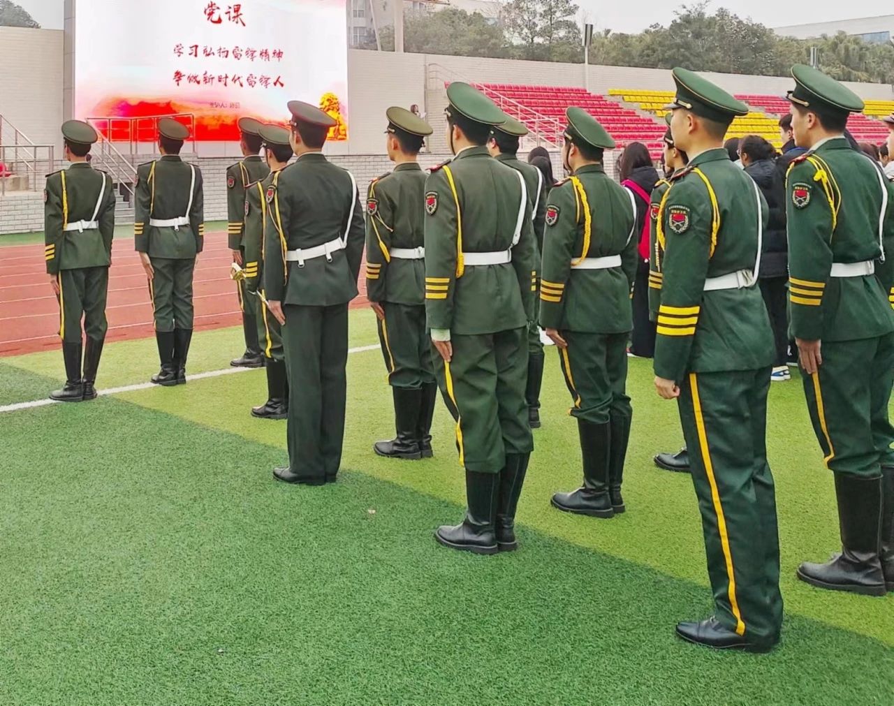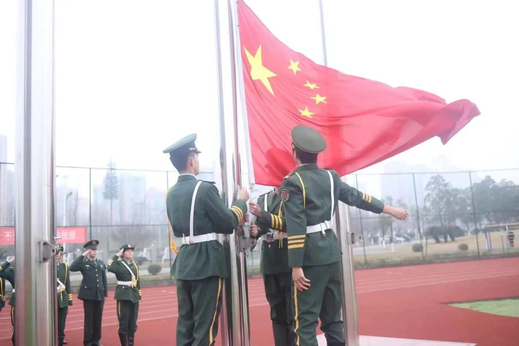 在2024年3月4日的清晨,教育学院举行了“学习弘扬雷锋精神,争做时代雷锋人”的主题升旗仪式。国旗护卫队的队员穿着干净整洁的常服,以最饱满的状态、精神抖擞地在操场上排列着整齐的队形,让五星红旗以最完美的姿态,与太阳一同升起。伴随着国歌响起,大家对祖国的敬畏感从心底油然而生,直到五星红旗升到顶端,随风飘扬,队员们激动的心情才渐渐平复。