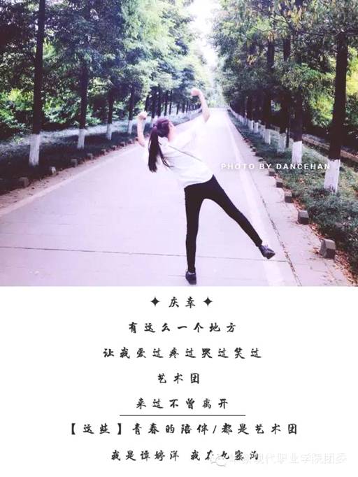 我相信,只要加入艺术团,你就会深深地爱上这里。人生的大幕随时可能拉开,看你愿意表演,还是选择躲避。 既然选择了远方,便只顾风雨兼程;既然钟情于玫瑰,就勇敢地吐露真诚;既然目标是地平线,留给世界的只能是背影;唯有热爱,才能不去想未来是平坦还是泥泞。