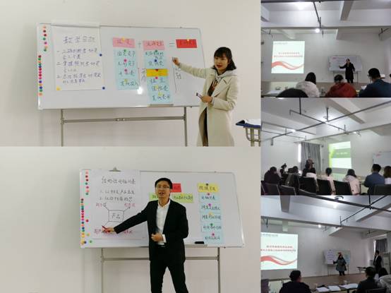 会议前,符主任就我院2018年大学生SYB创业培训开展概况以及此次教研会的目的、意义为参会人员做了简要介绍。随后,我院校内师资林森、王晓梦、戴杨杨三位老师分别上台进行了20分钟的试讲,接着,周佳、后雪梅、王睿婷三位专家讲师分别从课堂设计、课堂氛围、与学生交流等方面为我院教师进行了深入的指导和点评。然后,周佳、后雪梅两位专家讲师上台为我院教师进行了现场示范授课。会后,校内外师资积极开展了交流和研讨,相互启发,共同提高。