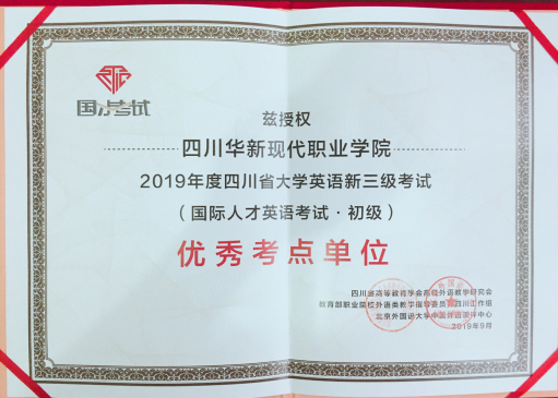 今年上半年,我院培训部首次组织四川新三级考试,并同时为省内11所院校的考生提供了考试服务。我院严谨、细致、周到的考试组织服务工作,赢得了新三级考委会的充分肯定和认可,被授予2019年度四川省大学英语新三级考试“优秀考点单位”。