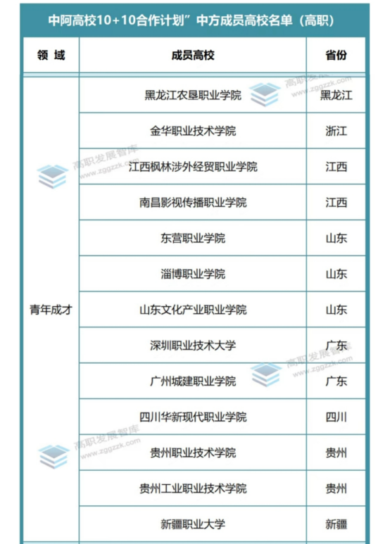 图:中阿计划青年成才领域高职院校成员名单