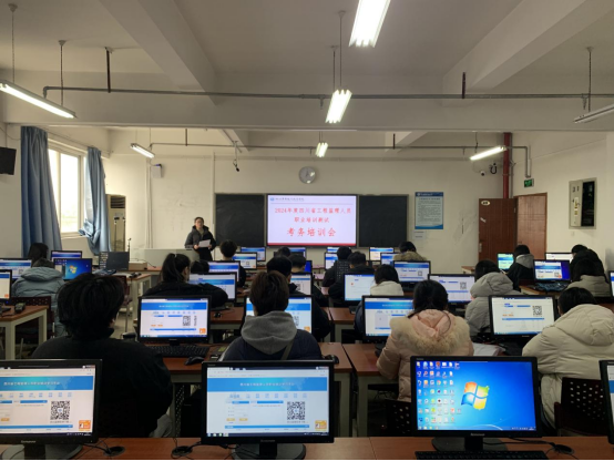 考前,学院培训组织技术人员对考试系统进行测试,组织考务人员对考场外围环境进行精心布置,同时组织召开专题考务培训会,为考务、监考、技术等工作人员梳理考试工作流程,强化考试纪律,确保本次考试工作有序开展。