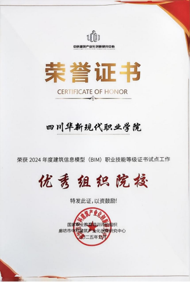 近日,由于我院在2024年度“1+X”建筑信息模型(BIM)职业技能等级证书和2024年度“1+X”数字影像处理职业技能等级证书考试工作中的突出表现,被教育部“1+X”证书评价组织廊坊市中科建筑产业化创新研究中心评为“优秀组织院校”、被中摄协国际文化传媒(北京)有限公司评为“优秀院校”。