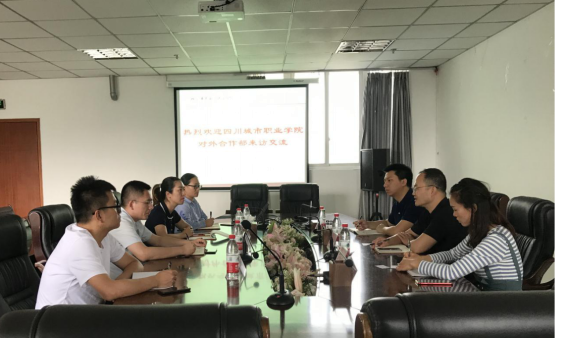 6月17日下午,四川城市职业学院对外合作部副部长张志伟、吕晞梅一行来我院访问交流,我院培训部主任符又仁一行热情接待了来宾,双方在明德楼六楼会议室举行了交流座谈会。