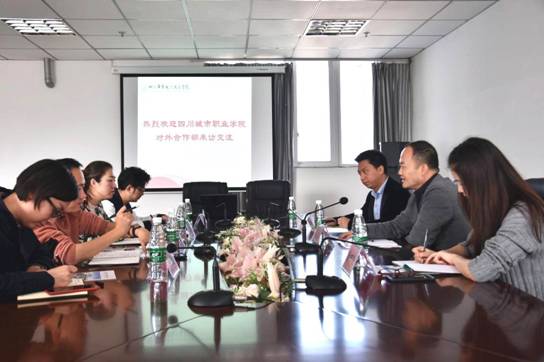 2018年10月9日下午,四川城市职业学院对外合作部部长敬阳,副部长吕晞梅一行到我院访问交流,培训部主任符又仁一行进行接待,双方在综合楼六楼会议室举行了交流座谈会。
