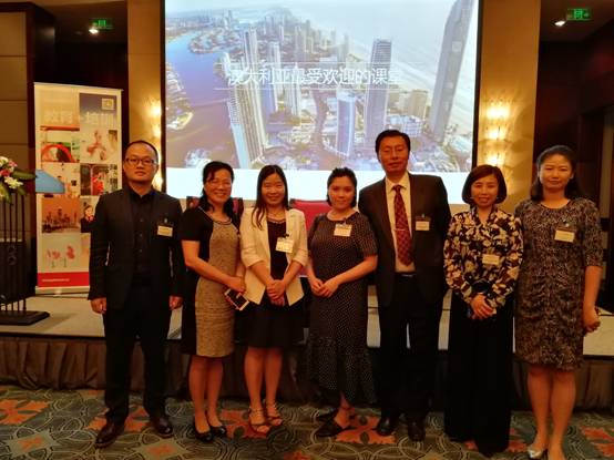 5月21日,澳大利亚昆士兰州教育推广署及黄金海岸教育推广署在成都香格里拉酒店举办主题为“教育,研究和创新”的推介会。澳大利亚驻成都总领事Christopher Lim 、澳大利亚驻成都商务领事Tim White、黄金海岸市教育局首席执行官 Shannon Willoughby等澳方官员和高校代表以及中方官员和嘉宾共计80余人参加。会议由Shannon Willoughby主持。我院党委副书记、副院长康敏、培训部主任符又仁一行受邀出席。