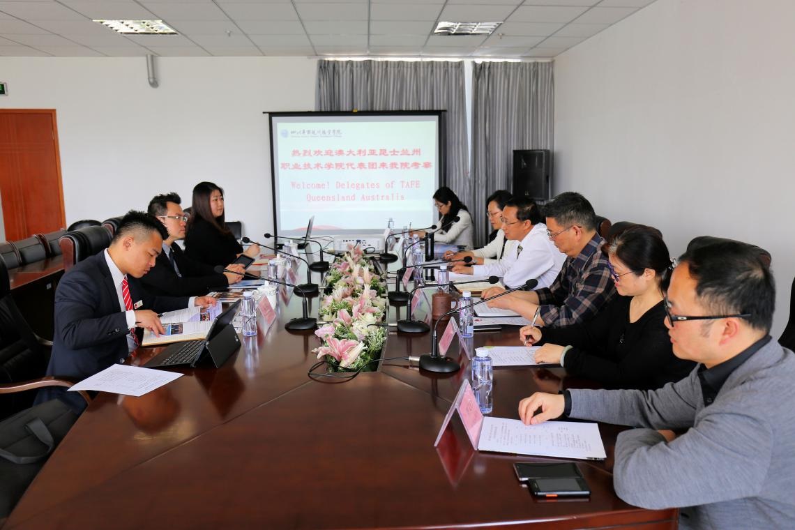 4月14日,澳大利亚昆士兰州TAFE职业技术学院Philip Fung处长、昆士兰州TAFE中国区域代表Sam Guo经理以及美中国际教育集团事业发展中心何明经理一行三人访问我院。学院杨波院长、康敏副书记、周仲文副院长、涂捷副院长、培训部符又仁主任、基础部张华主任、人事处邹菲菲副处长等领导及部门负责人热情接待了来宾。