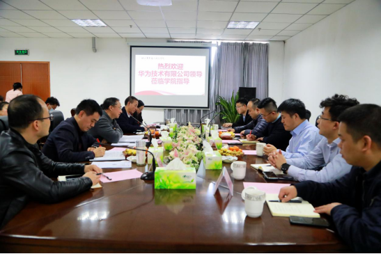 座谈会上,杨波院长对陆机周总经理一行的到来表示热烈欢迎,并介绍了我校的基本情况、办学特色、合作办学等方面的情况,对华为在振兴民族企业方面做出的卓越成就表示高度赞赏。希望与华为在信息技术专业方面展开合作,推动学校的信息技术专业师资队伍建设,提升社会服务能力,深化校企合作与产教融合。