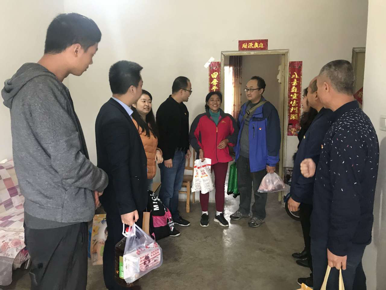 随后,行政二支部党员代表与社区五支部支委一行,前往社区贫困户江志荣家中进行“精准扶贫送温暖”慰问,为他们一家送去大米、菜油、面粉、猪肉等食品以及书包、文具等学习用品;了解到他们一家因丈夫重病卧床,妻子无法外出工作,家里没有收入来源,孩子还在读小学的具体困难后,张华和符又仁同志又以个人名义进行了捐助。