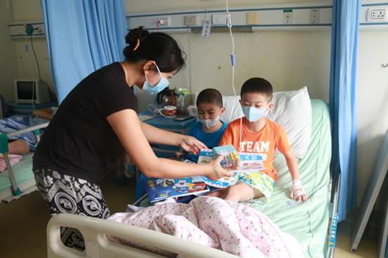 收到礼物的他们无比的开心,本应有灿烂笑容的他们却在病床上与疾病做斗争。为他们送上儿童节礼物的时候,他们开心、礼貌的说着谢谢,他们脸上上扬的嘴角,温暖了我们整个心房,感动在心间流淌。
