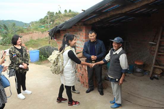 2016年10月26日,艺术系党支部全体党员前往金堂县栖贤乡梨花沟村慰问“四川好人”易盛怀老人,他苦苦坚守10年,靠着简易的工具,将家乡上山的羊肠小道改扩建成了宽近3米,长5公里左右的盘山路。易大爷身材瘦小,耳朵有些背,但身体却非常结实,一双大手长而有力。在山路间来去,许多年轻人都跟不上他的速度。