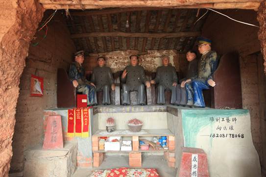 走进易大爷的堂屋,7尊伟人塑像庄严肃立,毛泽东、刘少奇、周恩来、邓小平…让我们再次大吃一惊。“旧社会我家穷得很,解放初被划为贫农。是共产党、毛主席、邓小平领导我们过上了好日子,除了自己的开销之外,省下来的钱就想着给伟人修建塑像,农闲的时候我就修路,为村子发展旅游业尽点力。”原来,这是易大爷的一桩心愿,他希望建立一座伟人塑像纪念馆,供来梨花沟旅游的游客上山来纪念伟人。