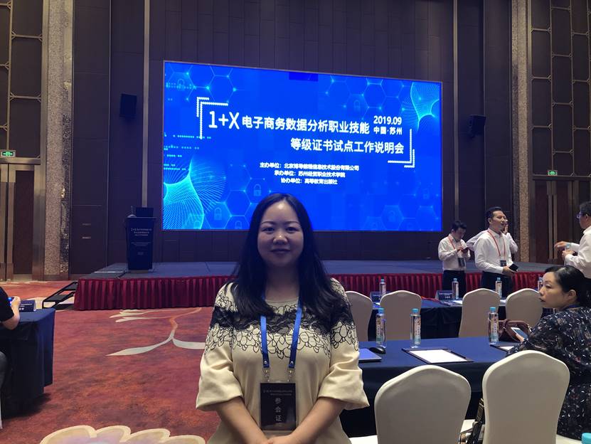 9月26日,由北京博导前程信息技术股份有限公司主办、苏州经贸职业技术学院承办、高等教育出版社协办的1+X电子商务数据分析职业技能等级证书试点工作说明会在苏州召开。江苏省教育厅职业教育处副处长徐庆、苏州经贸职业技术学院党委书记苏益南、高等教育出版社经管分社副分社长康荣、武汉职业技术学院科研处处长席波等领导和上海宝尊、杭州有赞、波司登、一点资讯等企业相关业务负责人出席会议,来自政府主管部门、全国职业及本科院校、行业企业代表近400人参会。会议由苏州经贸职业技术学院党委副书记朱伟峰主持。我院积极响应,派出电子商务专业负责人冉敏积极进行参会交流。