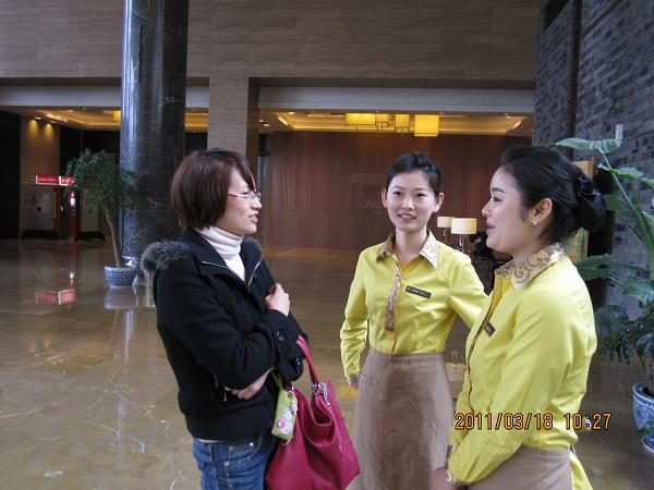 近日,2011年春季全国糖酒商品交易会在蓉拉开大幕,我系09级学生在此期间分赴成都世纪城天堂洲际大饭店、成都总府皇冠假日、四川绿洲大酒店进行相关课程的教学受训。根据专业主干课程的实训要求,学生在酒店需要观察和学习酒店、会展等相关旅游行业从业人员的仪容仪表仪态等礼仪要求;锻炼自己的语言表达能力、交流沟通能力以及营销能力等等;由于糖酒会国际化元素的增强,也需要学生观察入境旅游者或参展的外资企业在饮食、文化、礼仪等方面的特殊性,尽可能使用英语与涉外客人进行交谈,锻炼英语口语表达能力。
