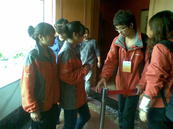 旅游系2010级旅游管理专业先羽婷、任晓钰、黄艳华等23名同学于4月8日——4月12日参与康辉国际旅游社“宝健会议”接待工作,他们被安排在沙湾国际会展中心、青城山景区、都江堰景区、宽窄巷子、武侯祠、蜀品轩、陈麻婆川菜酒楼等20余处地点从事景区接待、餐饮服务、会议安排等不同工作。