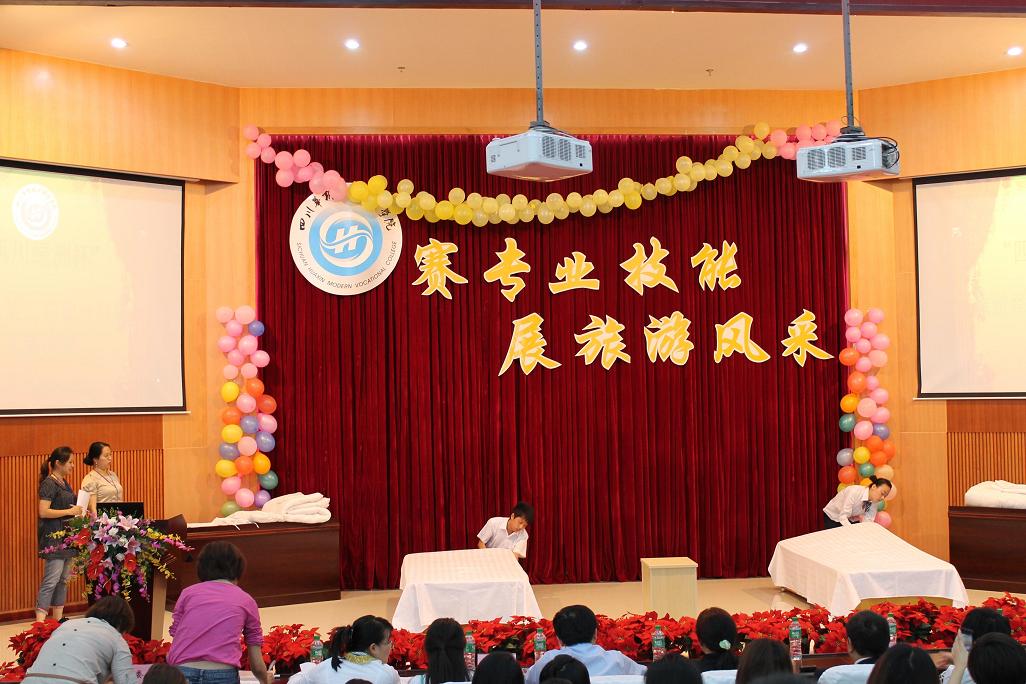 2011年6月1日下午,我系“四川绿洲杯”第二届职业技能大赛决赛在学术报告厅举行。副院长康敏、教务处处长杨志超、旅游系主任夏兰及四川绿洲大酒店总经理王虹、人力资源部经理贺川出席了此次职业技能大赛。行业专家以及旅游系专业老师担任了本次大赛的评委。