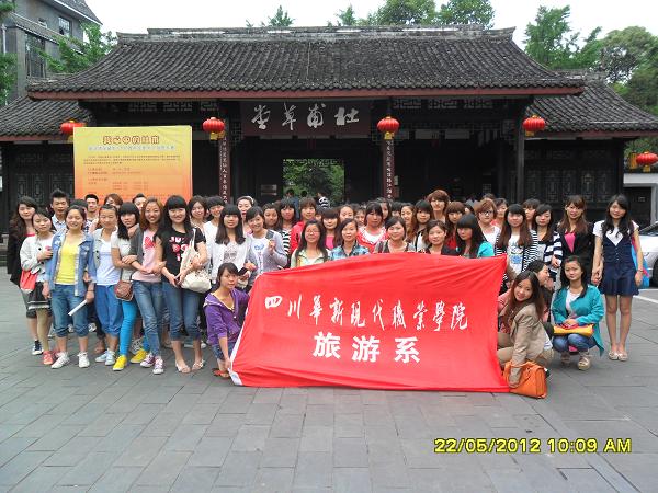 2012年5月22日旅游系旅游管理专业学生在杜甫草堂景区开展校外实训环节,此次实训的主要任务是景点知识的双语讲解。