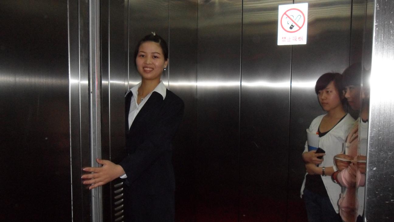 2011年04月18的早上8:20开始,一群身着职业装面带微笑的学生,准时站在我院综合楼的三部电梯内外,为全院师生提供优质的电梯服务。