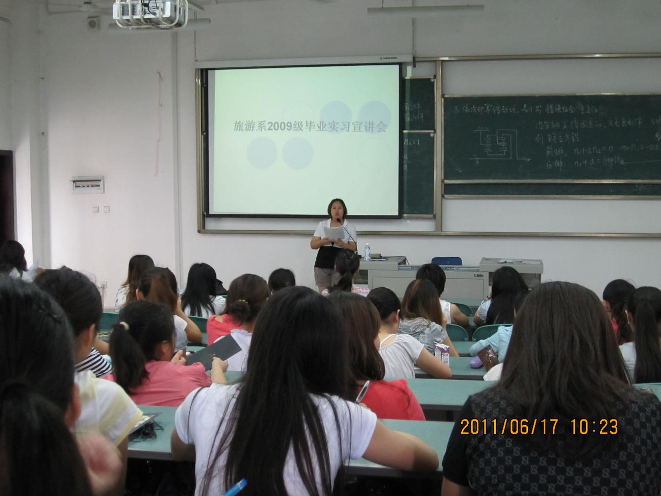 6月18日下午,旅游系召开2009学生毕业实习动员大会, 以此揭开旅游系实践教学和顶岗实习的序幕。全系教师及2009级实习生参加了动员大会。