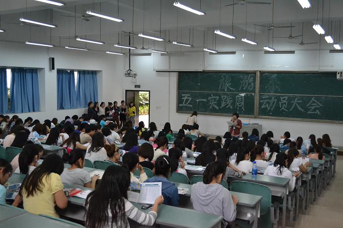 为认真贯彻学院关于开展“五一”实践周活动的文件精神,我系领导高度重视,于4月25日上午,在教学楼112教室举行了旅游系“五一”实践周动员大会,参加动员大会学生共251名,分别为旅游管理专业和酒店管理专业学生。
