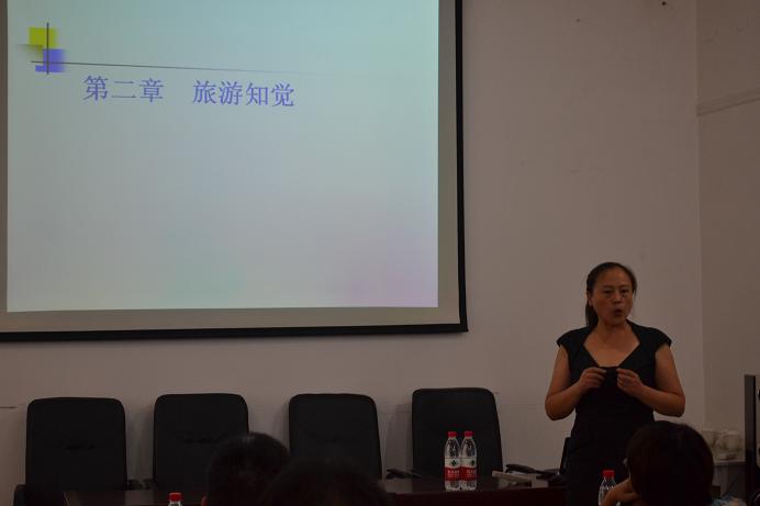 会议第一阶段,系主任夏兰、旅游专业老师贾瑛以及酒店专业老师王仪,分别为在座老师进行了专业课程的示范课;通过三位老师的精心准备,示范课受到了与会领导和老师们的好评,让在座的教师们特别是青年教师受益匪浅。