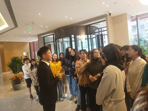 在酒店人力资源经理的带领下,我们参观了整个酒店。酒店人力资源经理也为我们详细介绍了整个酒店各个部门的布局、工作环境、运营情况以及酒店的各种设施设备等,让同学们对《饭店服务》这门课程有了更加直观地了解,也让同学们对自己今后的职业道路有了更加真实地理解。