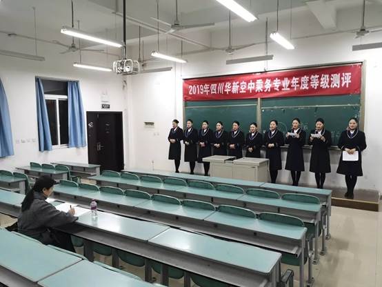 本次年度等级考试由中航联盟为评判合作院校空乘学子所做的测试,从面试技巧、仪容仪表、普通话、英语和专业知识五个方面进行考核,采取面对面的形式。本次考核由中航联盟派驻四川华新的两位空乘教师准备,由中航联盟院校管理部教学部负责人李轶超老师进行考核。在针对华新空乘学子进行考核前与华新空乘专业负责人罗老师进行小型洽谈会,讨论教学课程的设置,专业构建的方向和模式,促进校企合作的深化和创新。