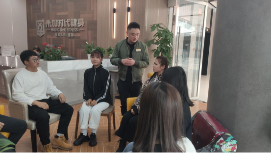 首先,我们前往位于天府大道中段成都红唐购物中心的米加时代健身(天府五街店),受到会籍经理曾书洪、主管郭家强的热情接待。在郭主管的陪同下,师生一行对店面进行了参观,使我们对健身连锁企业门店的布局及配置产生了直观形象的了解和认知。随后,曾经理以“如何艺术的进行销售”为主题结合丰富生动的实际案例与师生进行专题分享,现场气氛十分活跃。