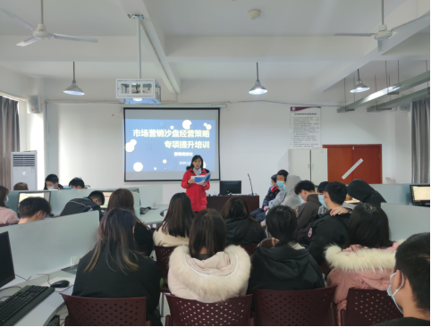 12月21日下午,营销竞技社在知行楼203教室开展市场营销沙盘经营策略专项提升培训,本次活动由社长邹杜燕、副社长陈义共同主持,主要针对2020级全体社员。
