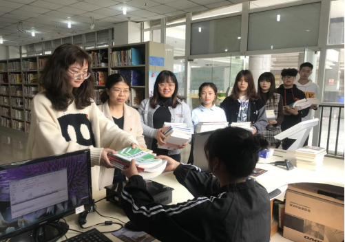 3月18日下午,营销竞技社组织部副部长刁成连带领张魏、张官春、韩远梅、谭凤姣、杨婷六位社员前往图书馆开展捐书活动,本次活动为图书馆捐书88本。